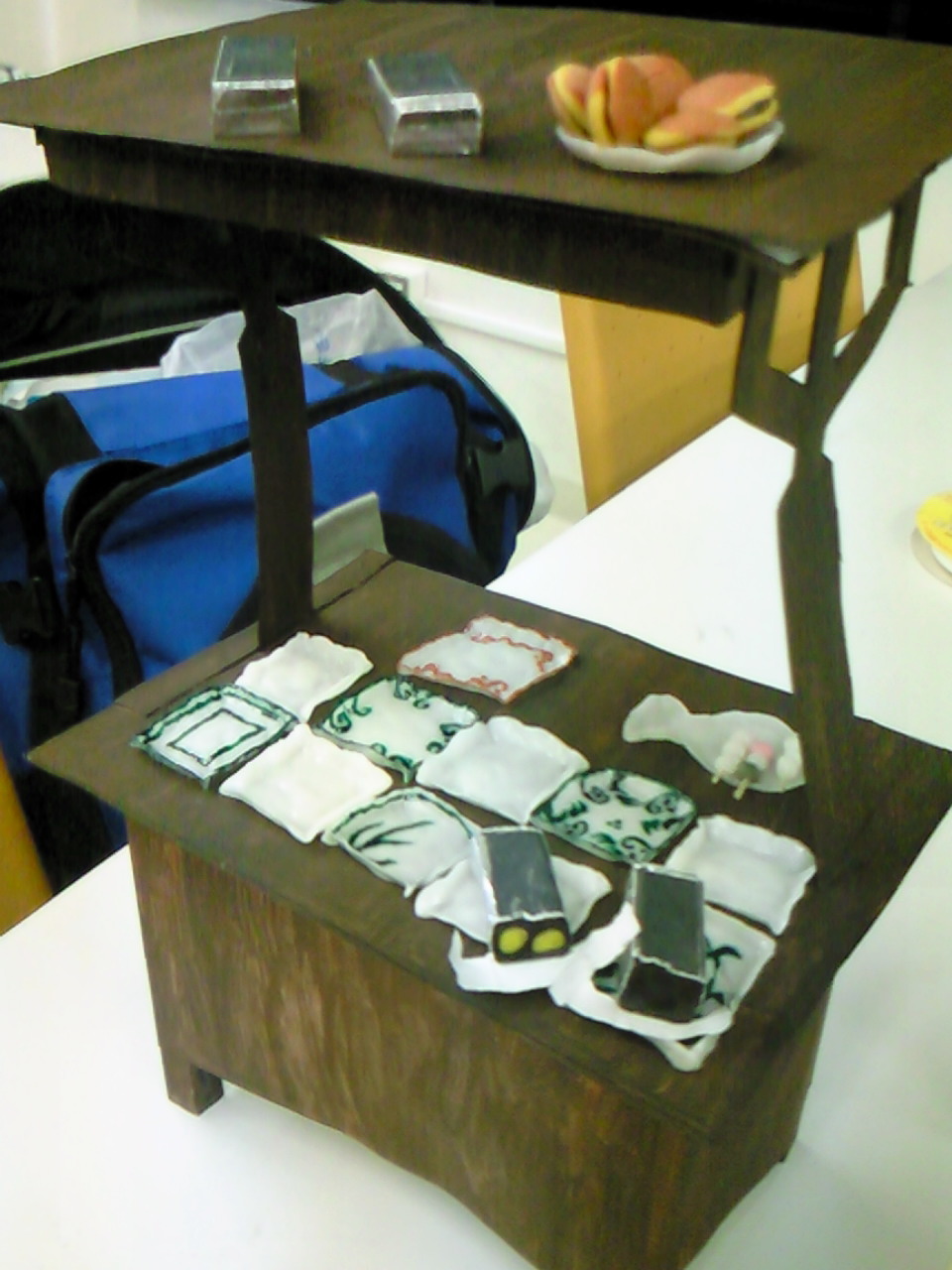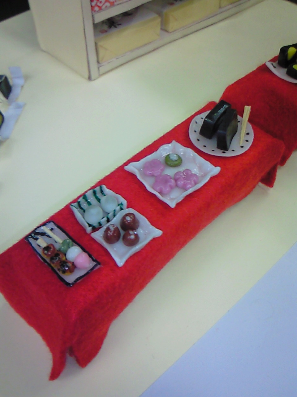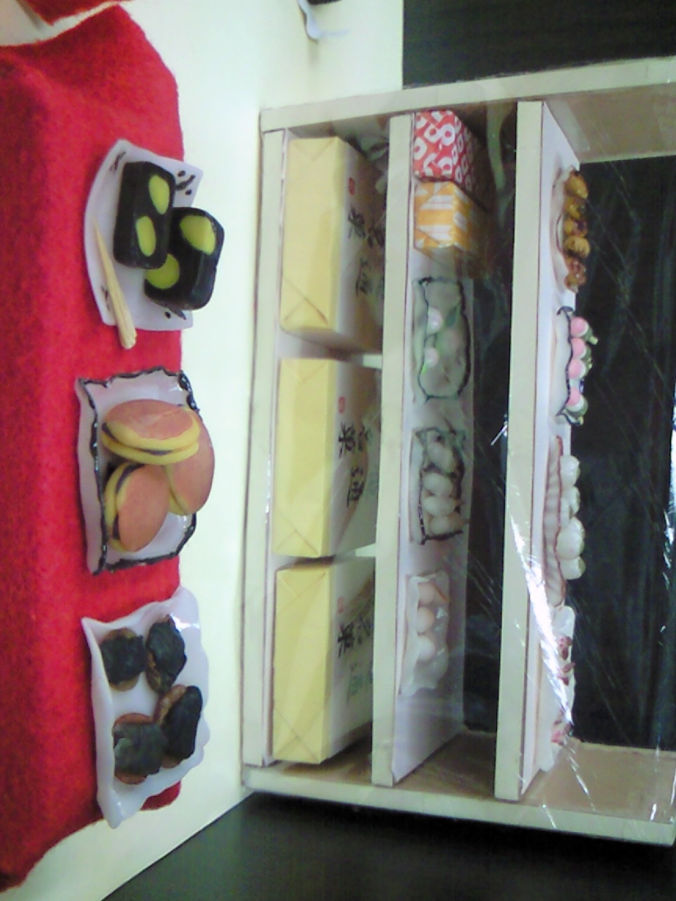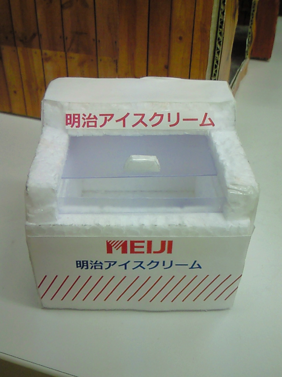 中の駄菓子とか。アイスケースと冷蔵庫と中の棚とかカウンターとか店と構成する道具的なものは俺が作った。開閉できるようにするのに苦労した。1円玉や10円玉は比較。